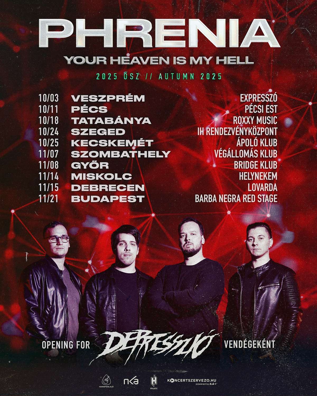 Az őszi Depresszióval közös koncertek helyei és időpontjai:
